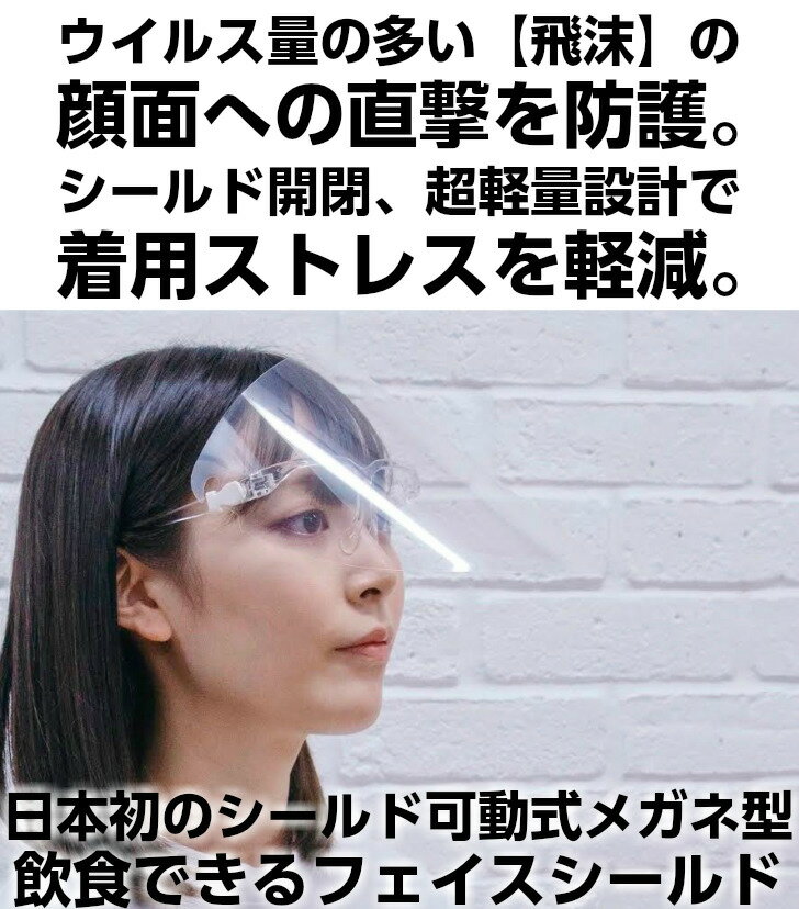 飲食できる フェイスシールド 眼鏡型 可動式 PCPフェイスシールド 3個セット(フレーム3+シールド3) ⇒ フェイスガード メガネ 跳ね上げ 開閉式 日本製 曇らない 高透明 飛沫防護 感染防止 丸洗い可 子供兼用 男女兼用 スマート 薄型 軽量 看護 介護 接客 ストレスフリー 曇りにくい 可動式 スマート《フレーム3個+シールド3枚》 セット[意匠・実用新案]登録済【国内出荷】※領収書発行可能 ポニーキャニオンプランニングが、コロナ禍の中なんとか少しでも日常を取り戻す方法はないかと独自開発したフェイスシールド。